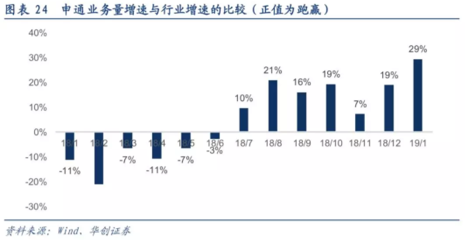 與此同時申通的經(jīng)營情況也開始出現(xiàn)明顯的改善。從2018年分月數(shù)據(jù)來看,從2018年7月開始,申通快遞的業(yè)務(wù)量增速開始跑贏行業(yè)增速,這也就意味著申通快遞的市占率從2018年7月開始逐步上升。截止2019年3月,申通業(yè)務(wù)量市占率達(dá)到10.64%,較去年提升接近1個百分點(diǎn)。